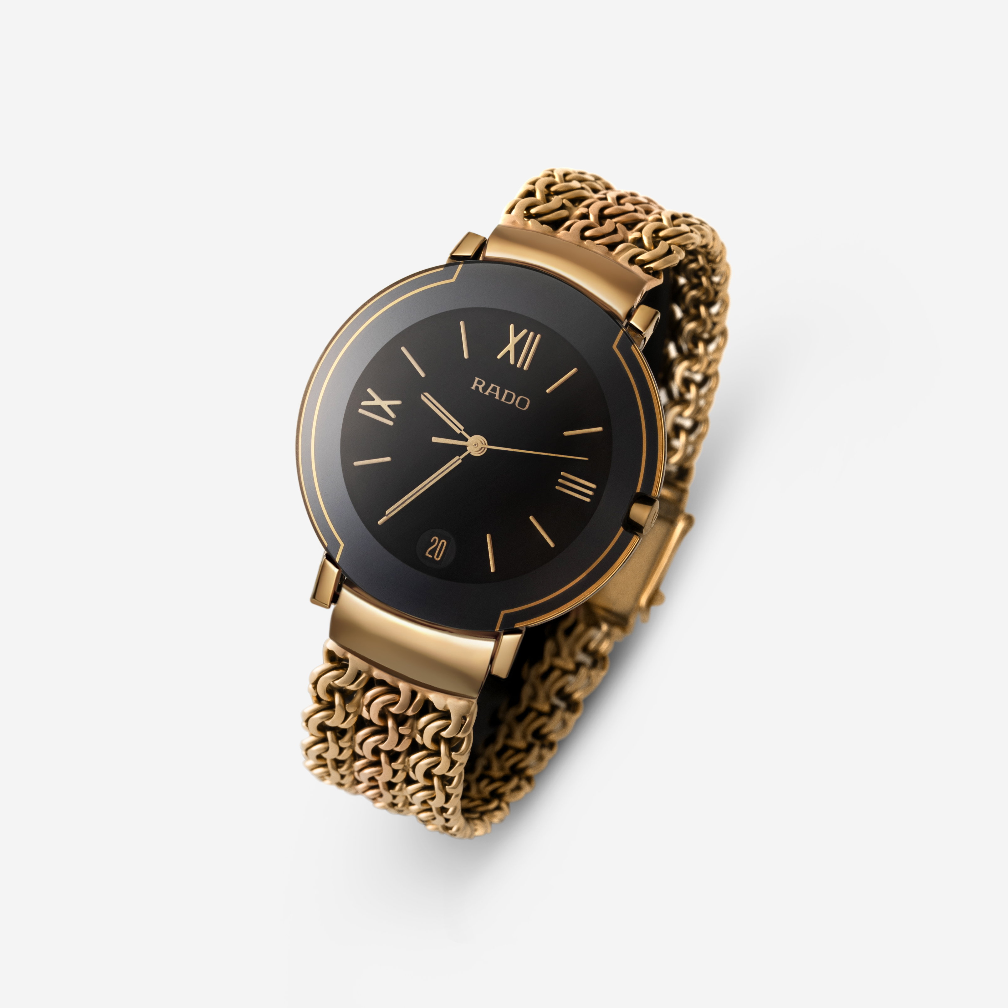 Note: This timepiece unites an authentic Rado watch head with a handcrafted gold bracelet. The bracelet is an independent creation, not produced or endorsed by Rado. As the watch has been modified, the original Rado warranty may no longer apply. For more details, please see our full Authenticity Statement in the Information & Service section.