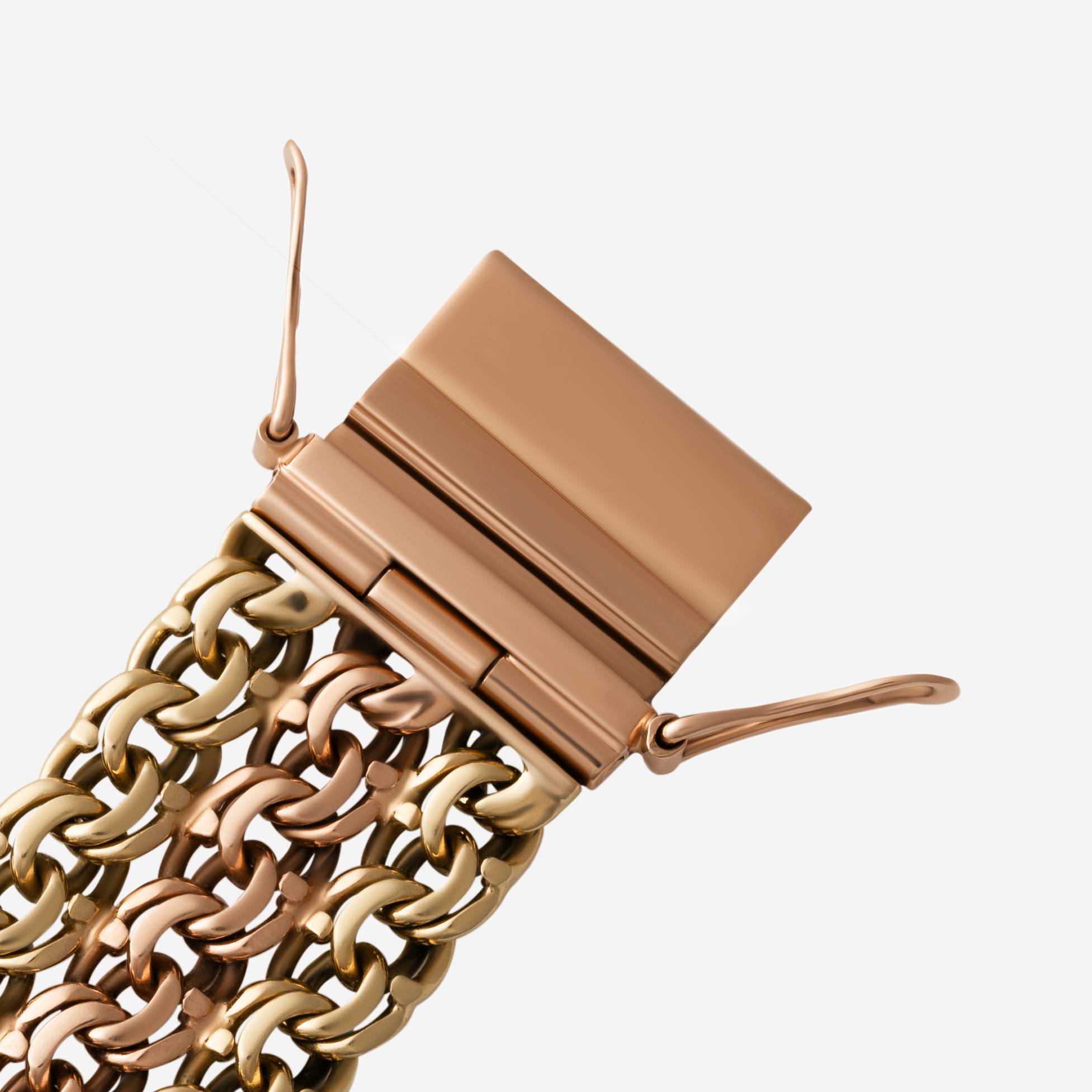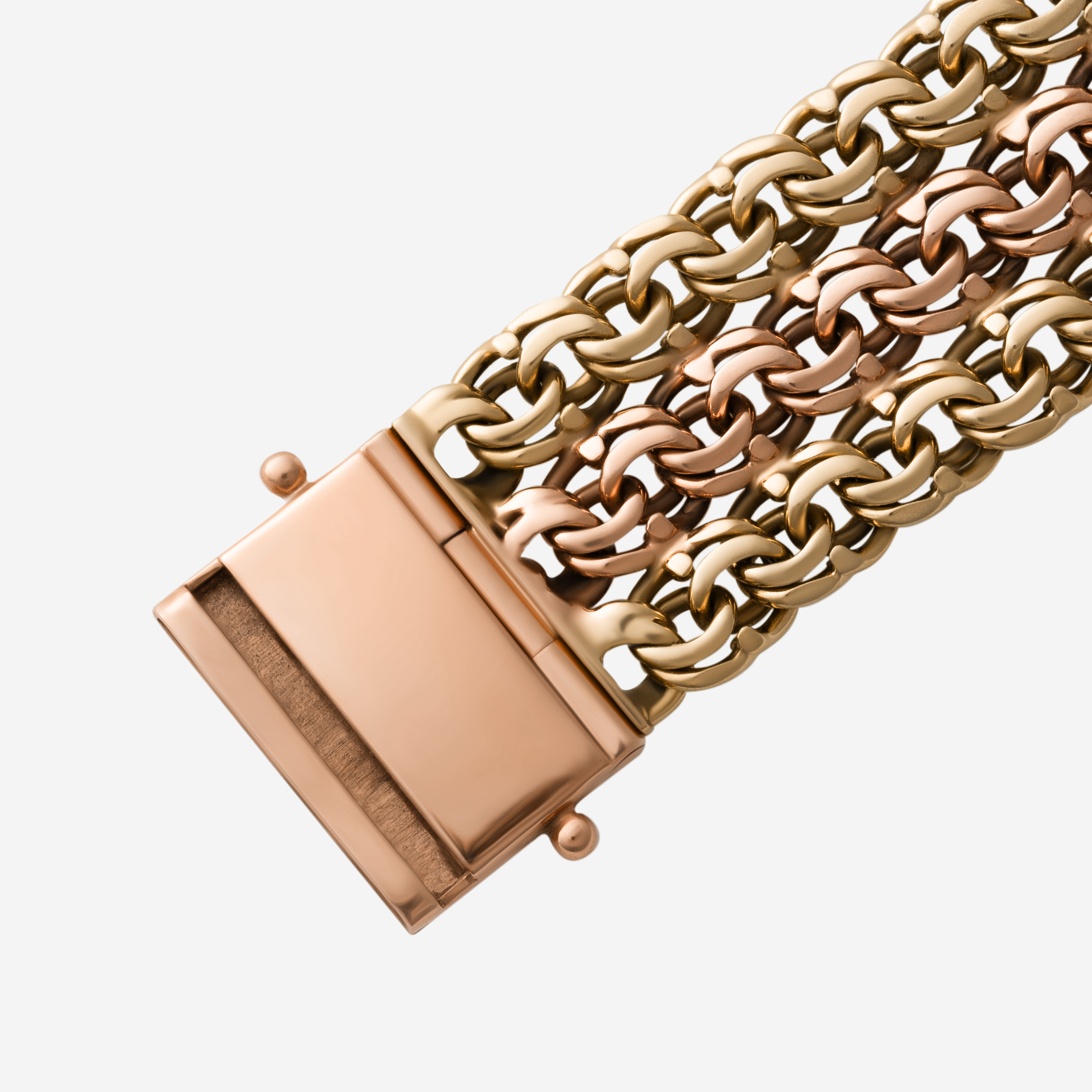 | Bracelet: | Handcrafted 585 gold (14K), woven design |